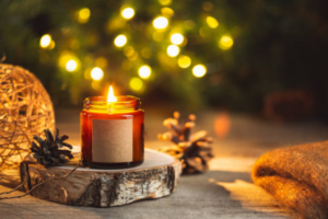 Holiday candles or diffusers with warm, wintry scents like cinnamon, pine, or gingerbread will instantly evoke Christmas cheer. Bonus points for cinnamon sticks tied with ribbon as decorative accents.