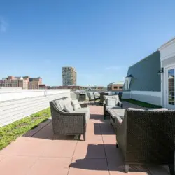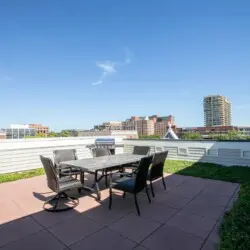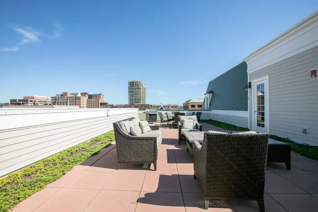 ⇥ Outdoor rooftop area w/seating and grill.