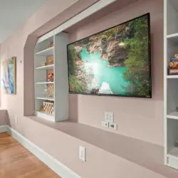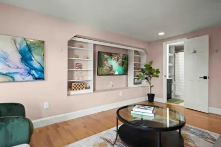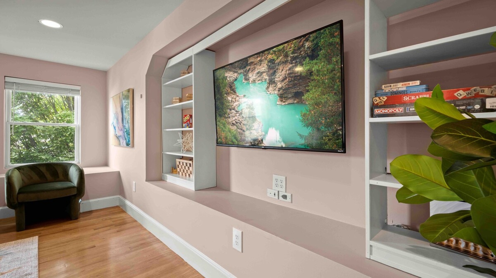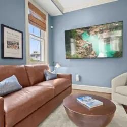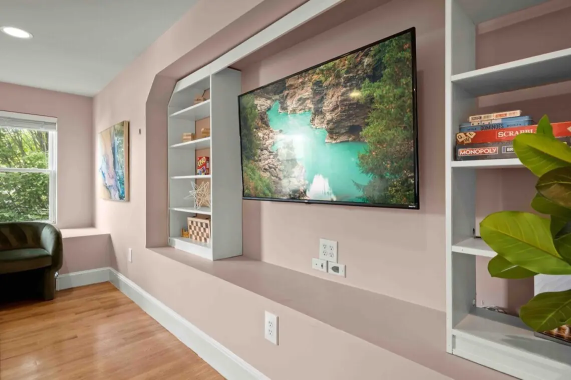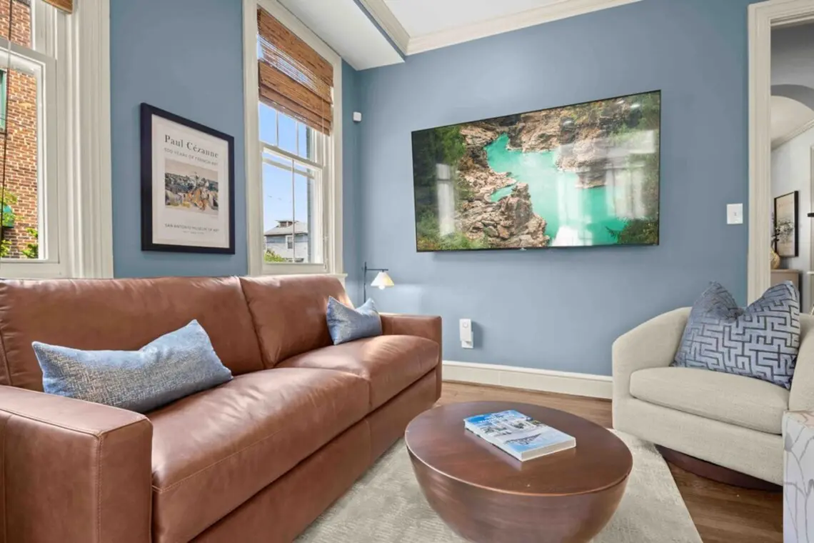 ⇥ 75″ 4K TV in living room.