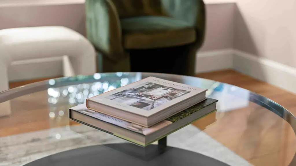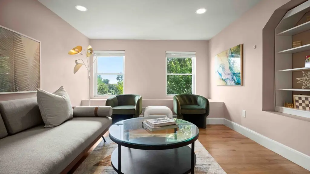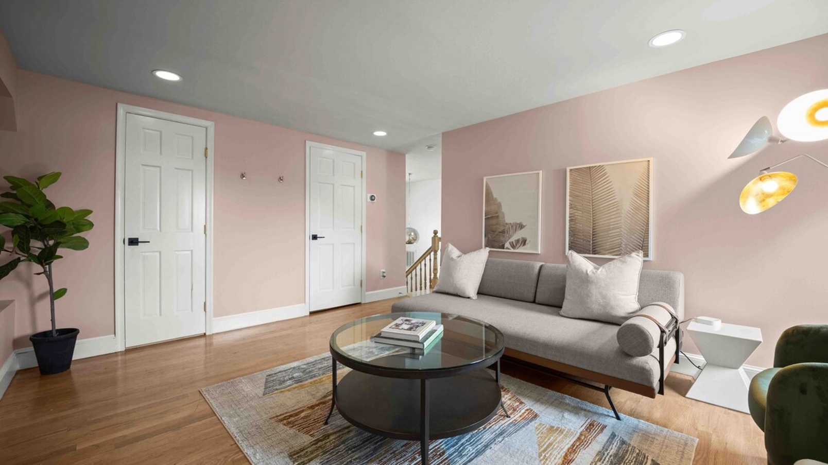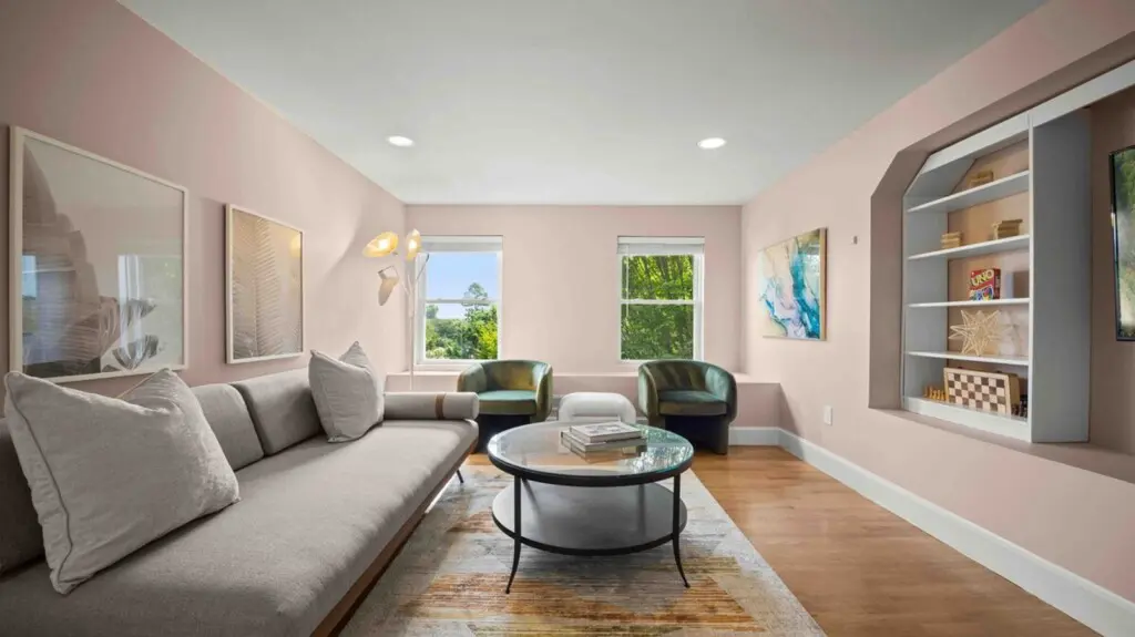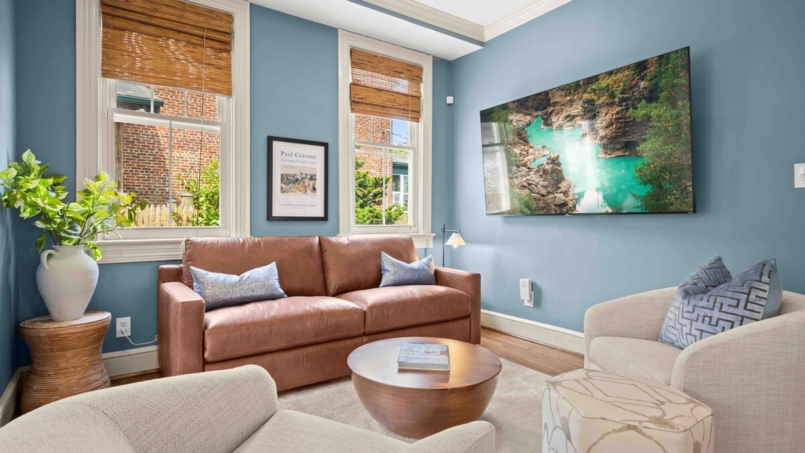 ⇥ 75″ 4K TV in living room.