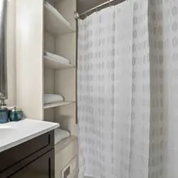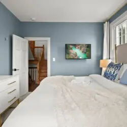 7. One of the bedrooms features drawers for clothes storage, instead of a closet, providing an efficient and stylish solution for keeping your belongings organized.