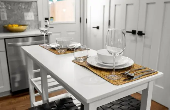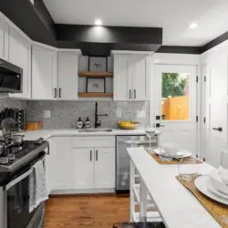 With Whole Foods less than 15 minutes walk and a kitchen that is fully-stocked, you have access to everything you’ll need to make and enjoy meals at home. The kitchen also has a door leading to the outdoor space area.