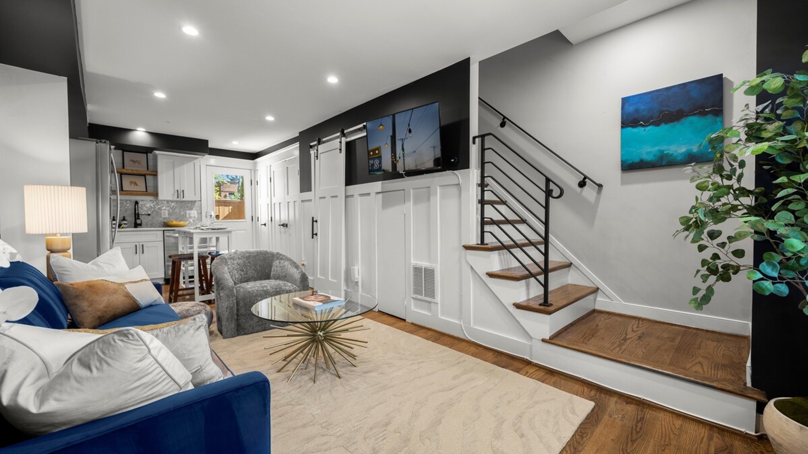Upon entering the home, you’ll step into the peaceful and cozy living room space. It features a smart TV to stream your favorite movies and shows on Netflix, Hulu, Disney+, etc. The living room, kitchen and dining area are all on the main floor, creating an inviting space for your entire group to engage in intriguing conversations, gather, dine-in and wine-down.