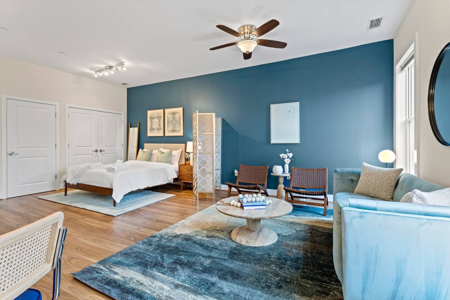 ⇥ Entire space plus building amenities is included in this rental. There is a shared, outdoor roof top-level common use space. Please make yourself at home.