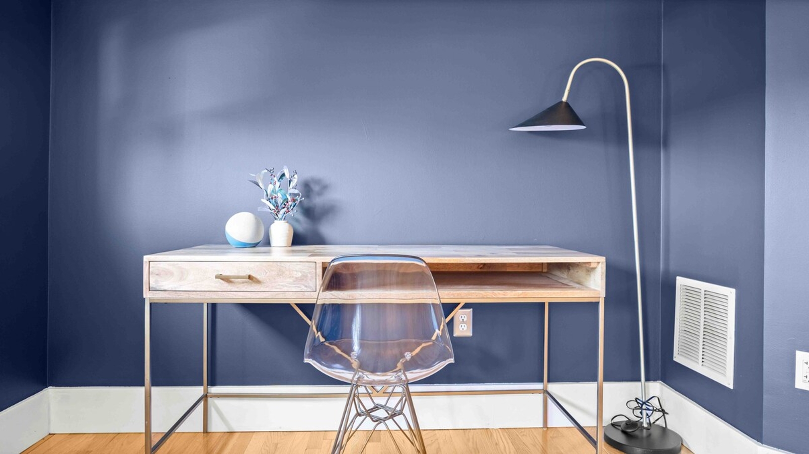 ⇥ Dedicated work-station, perfect for Zoom calls.