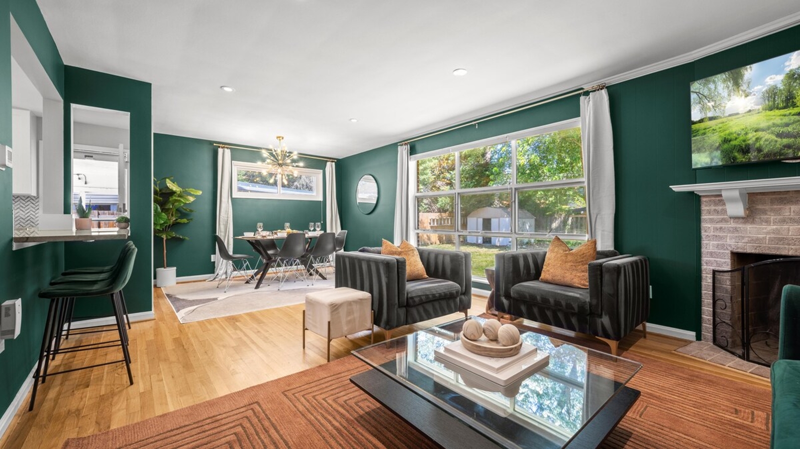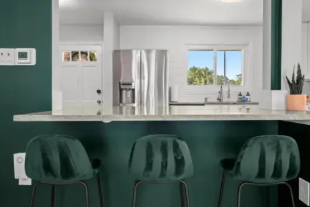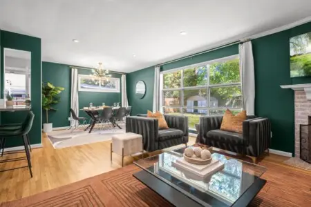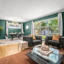 As you explore further, you’ll discover the fully fenced backyard, visible from the living room area, inviting you to relax and enjoy the outdoors.