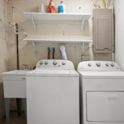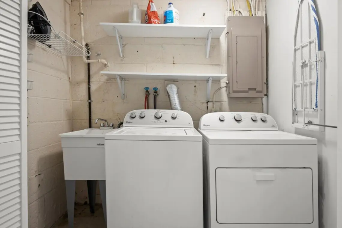 ⇥ Complimentary washer and dryer in the home.