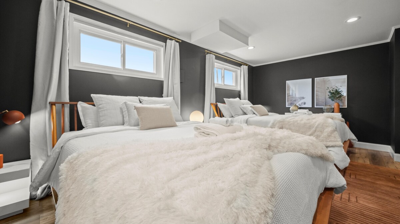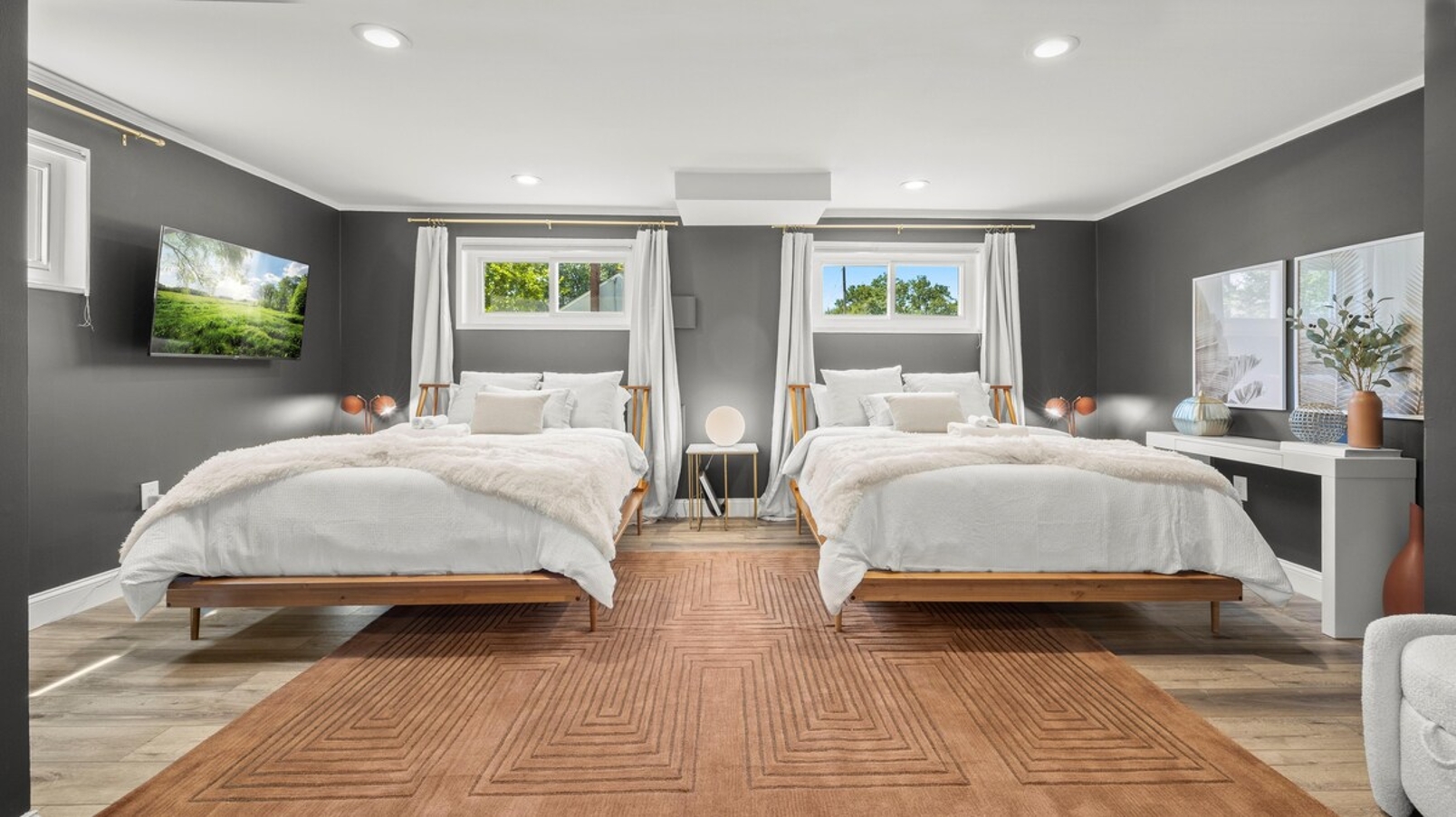 ⇥ 4K TVs in each bedroom.