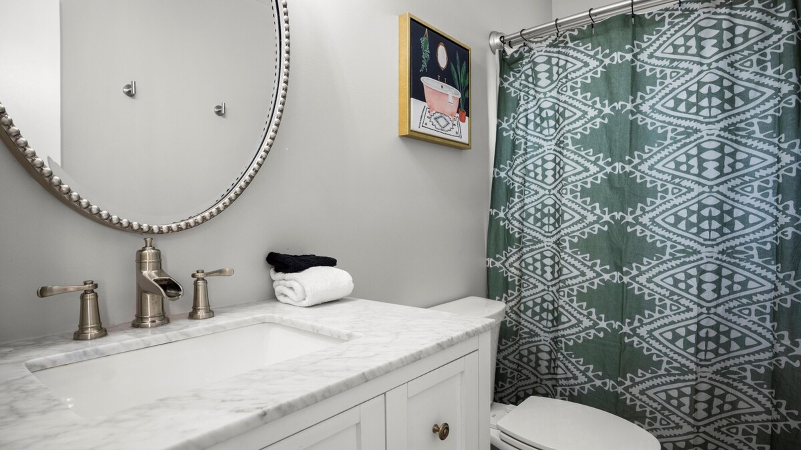 Convenience is at your fingertips with Harris Teeter only 5 minutes away, while the fully stocked kitchen empowers you to create wonderful meals in the comfort of your home-away-from-home, avoiding the inconveniences of hotel living.