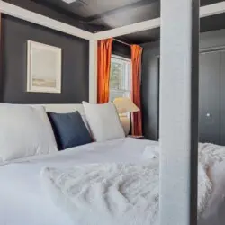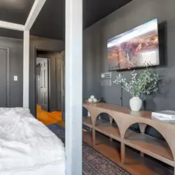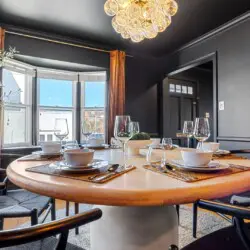 Upstairs, well-appointed bedrooms offer peaceful sanctuaries, each designed with comfort in mind. Enjoy restful nights in the primary bedroom, which overlooks the vibrant streets of Old Town but provides a serene escape from the hustle and bustle of city life.